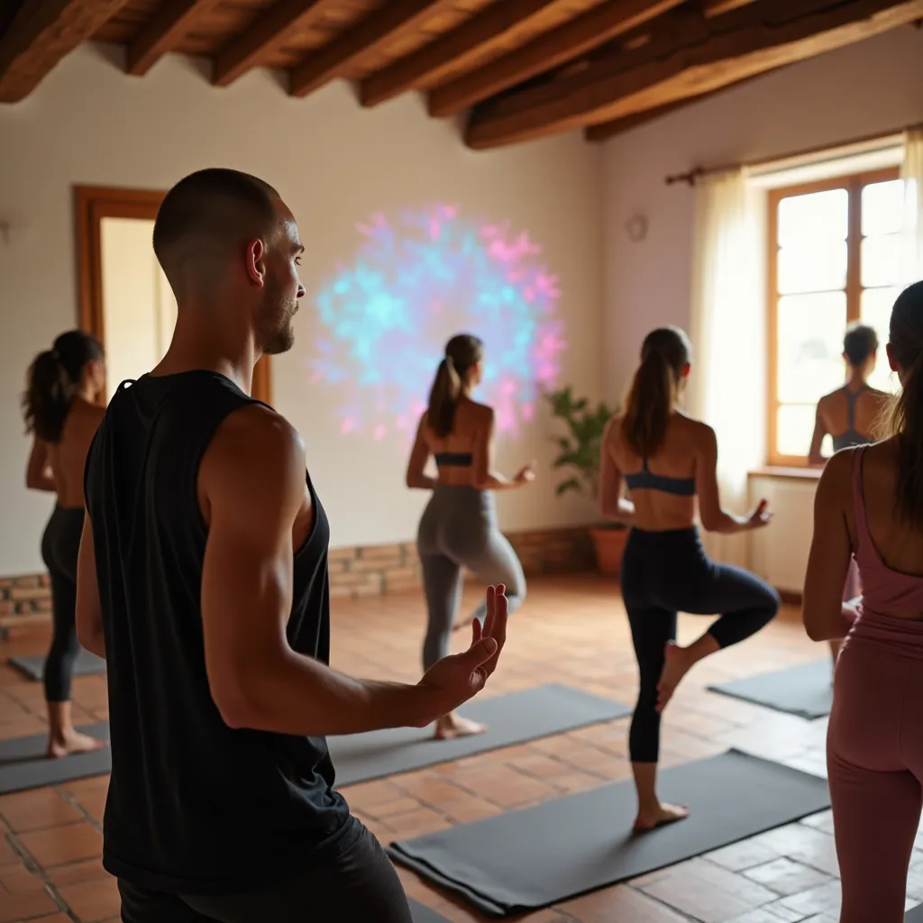 Participa en una sesión de yoga personalizada que incluye técnicas de respiración y relajación.